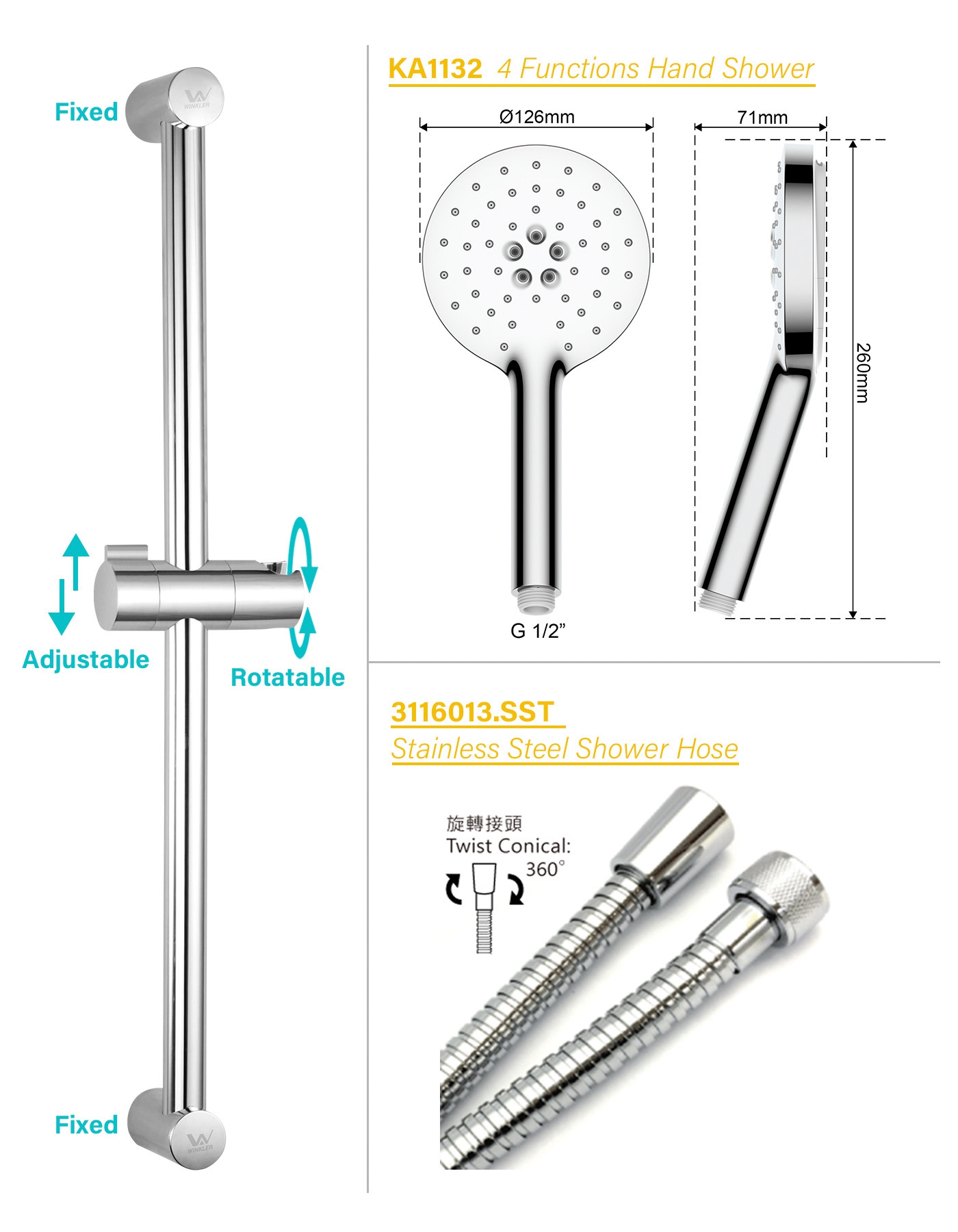 - Overall 700mm - 1.6M Stainless Steel Shower Hose