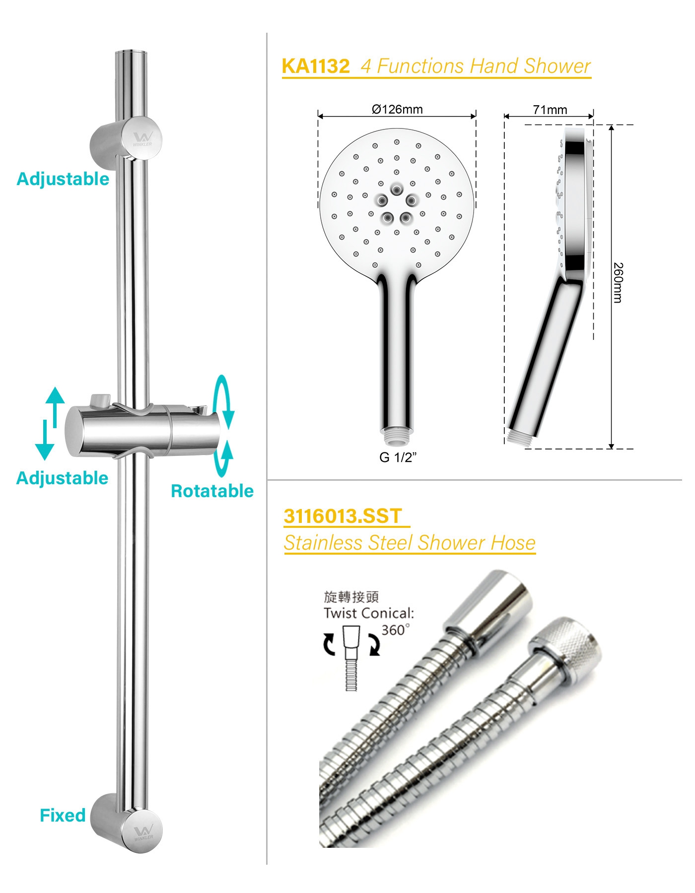 - Wall bracket can be adjusted - 1.6M Stainless Steel Shower Hose