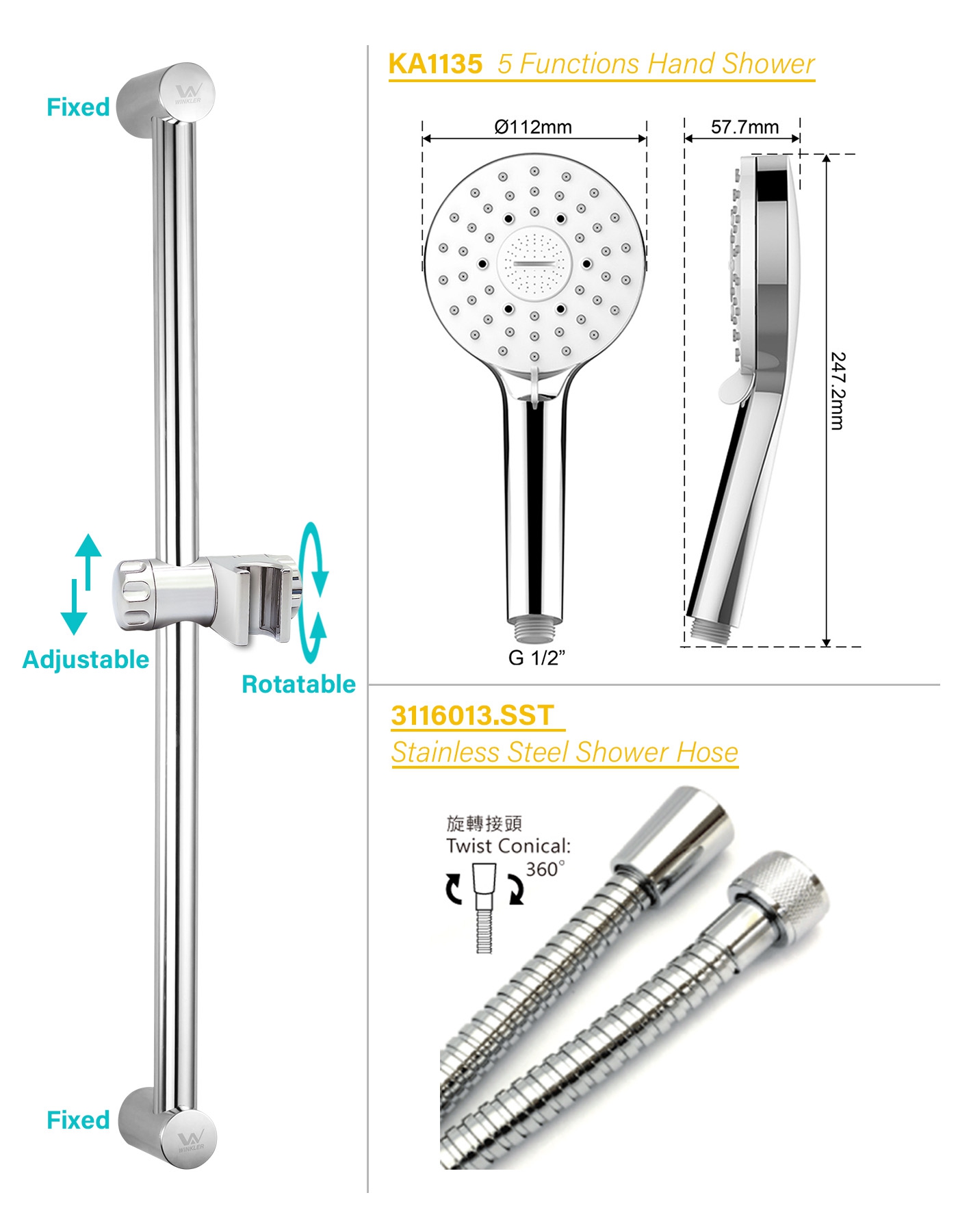 - Overall 700mm - 1.6M Stainless Steel Shower Hose