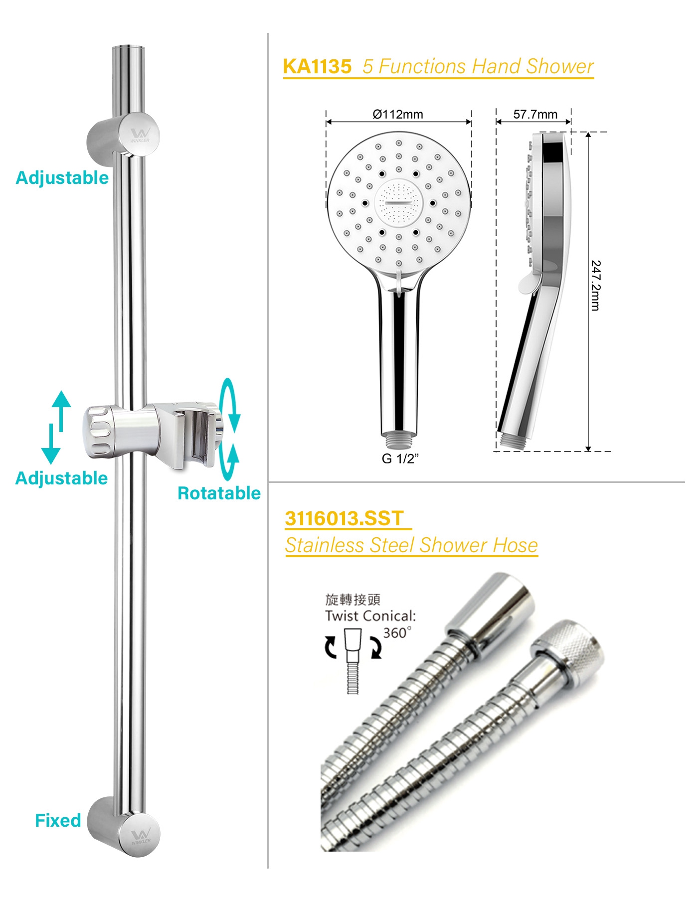 - Wall bracket can be adjusted - 1.6M Stainless Steel Shower Hose