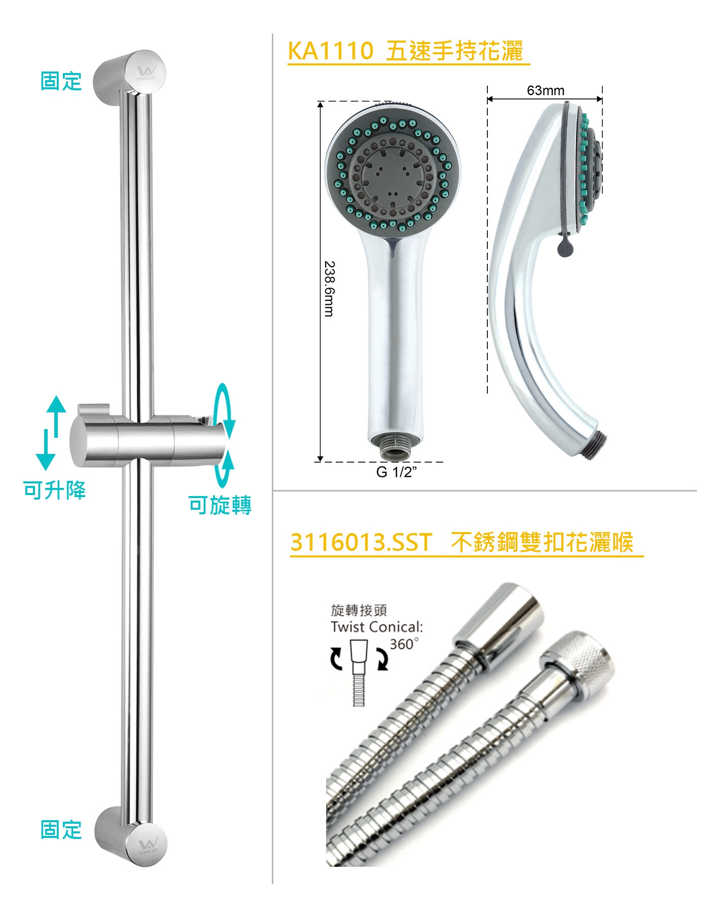 KW4004 固定柱通五速花灑套裝返回