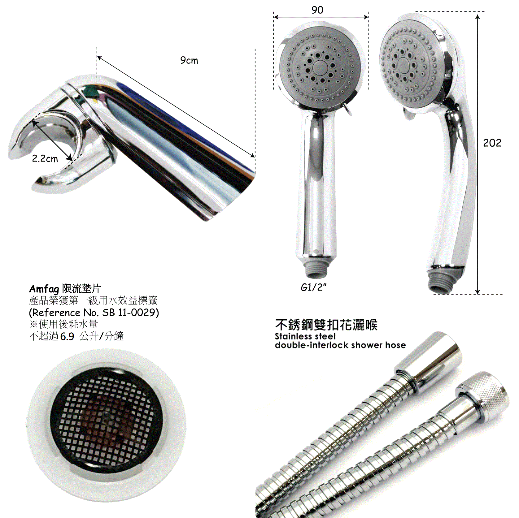 - 榮獲一級用水效益標籤 - 掛牆花灑座