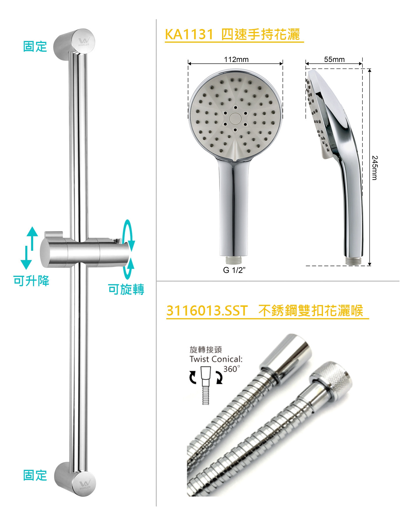 - 易於安裝和使用,適合大部分淋浴頭軟管