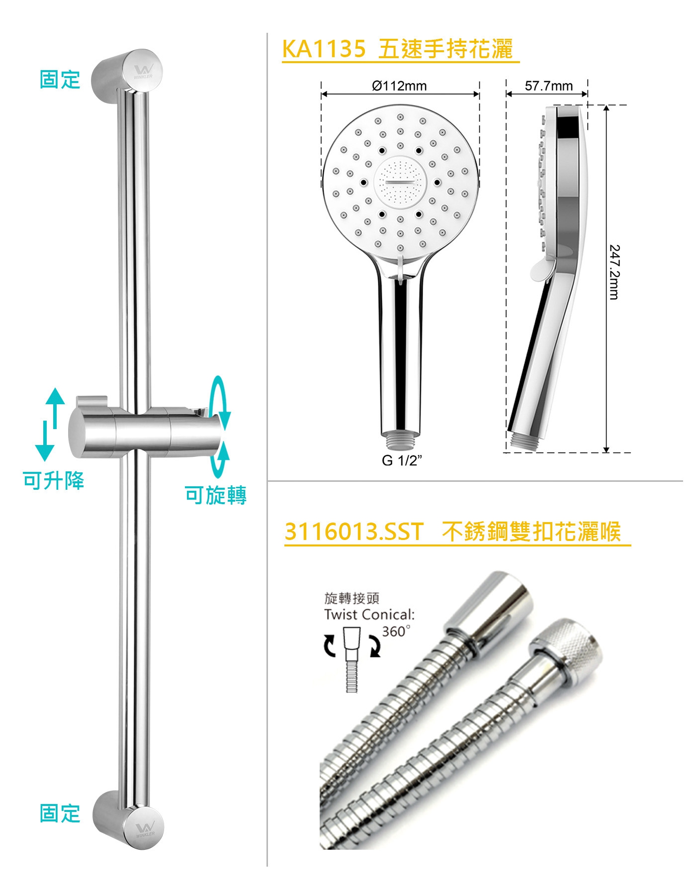 - 易於安裝和使用,適合大部分淋浴頭軟管