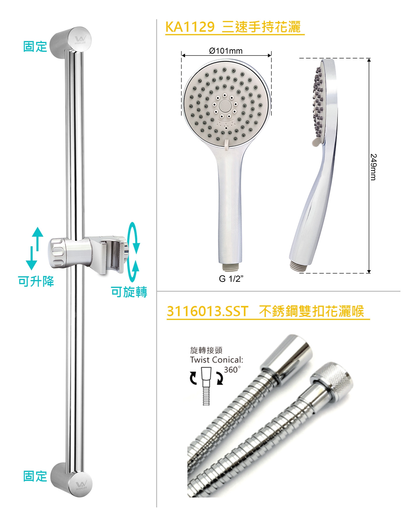固定柱通三速花灑套裝